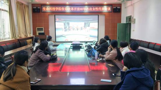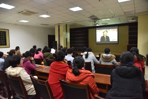 12月18日下午,我校工会组织全校女职工集中收看由全国妇联、人民网主办的庆祝改革开放40周年杰出女性代表访谈节目——《改革开放 巾帼力量》。