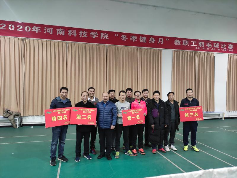 为贯彻落实《全民健身计划纲要》,提高教职工的身体素质,丰富业余文体生活,展现全校教职工团结协作、敢于拼搏、团结奋斗的精神,根据《河南科技学院关于开展2020年教职工“冬季健身月”活动的通知》精神,2020年11月30日至12月3日,由校工会主办、校“启航”羽毛球协会承办的2020年河南科技学院“冬季健身月”教职工羽毛球双打比赛,在我校大学生心理健康教育与指导中心素质拓展大厅举行,来自全校12个分会的50余名队员参加了比赛。