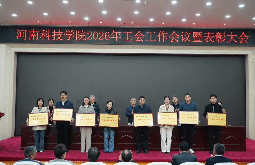 会议宣读了《关于表彰2025年度工会工作先进集体和个人的决定》《河南科技学院工会委员会2026年工作要点》,获奖单位及个人代表上台领奖。先进集体代表、先进个人代表分别作了发言。