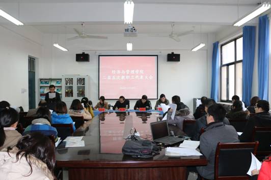 12月25日下午2点30分,经济与管理学院第二届第五次教职工代表大会于10号楼202隆重召开。经济与管理学院全体教职工参加会议,大会由院党委副书记、工会主席陈松玲主持召开。