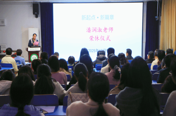 在荣休感言环节,潘润淑老师深情回望在学校的学习与工作生涯。她细数多年来与同事、学生的相处点滴,对学校及学院给予的关心支持、全体师生的祝福表达由衷谢意,话语间满含对教育岗位的不舍,以及对学校、学院未来发展的殷切期许。真挚的情感引发了在场人员的共鸣,现场氛围温馨而感人。