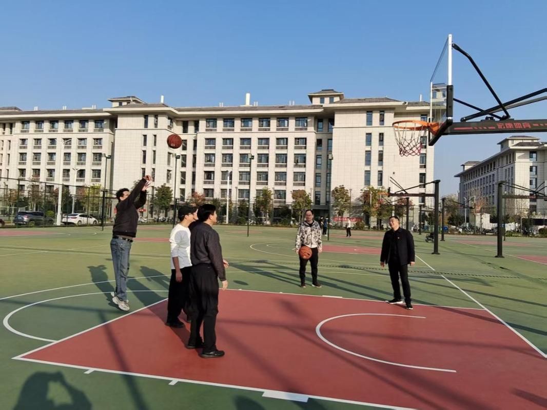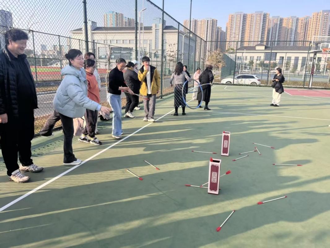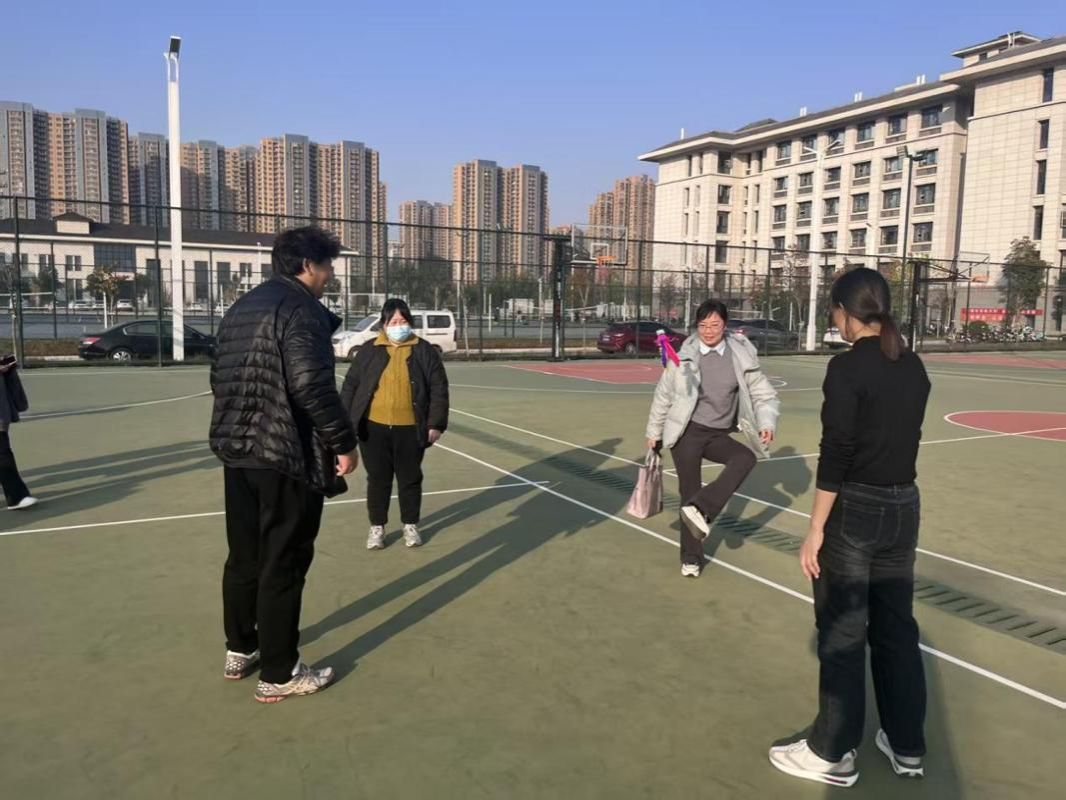 教师冬季健身系列活动在新东区田径场、篮球场等同步启动。本次健身活动精心设置了健步走、一分钟跳绳、踢毽子、投壶、转呼啦圈、定点投篮等多项运动项目。全体教职工积极参与,在欢快和谐的氛围中舒展筋骨、强健体魄。