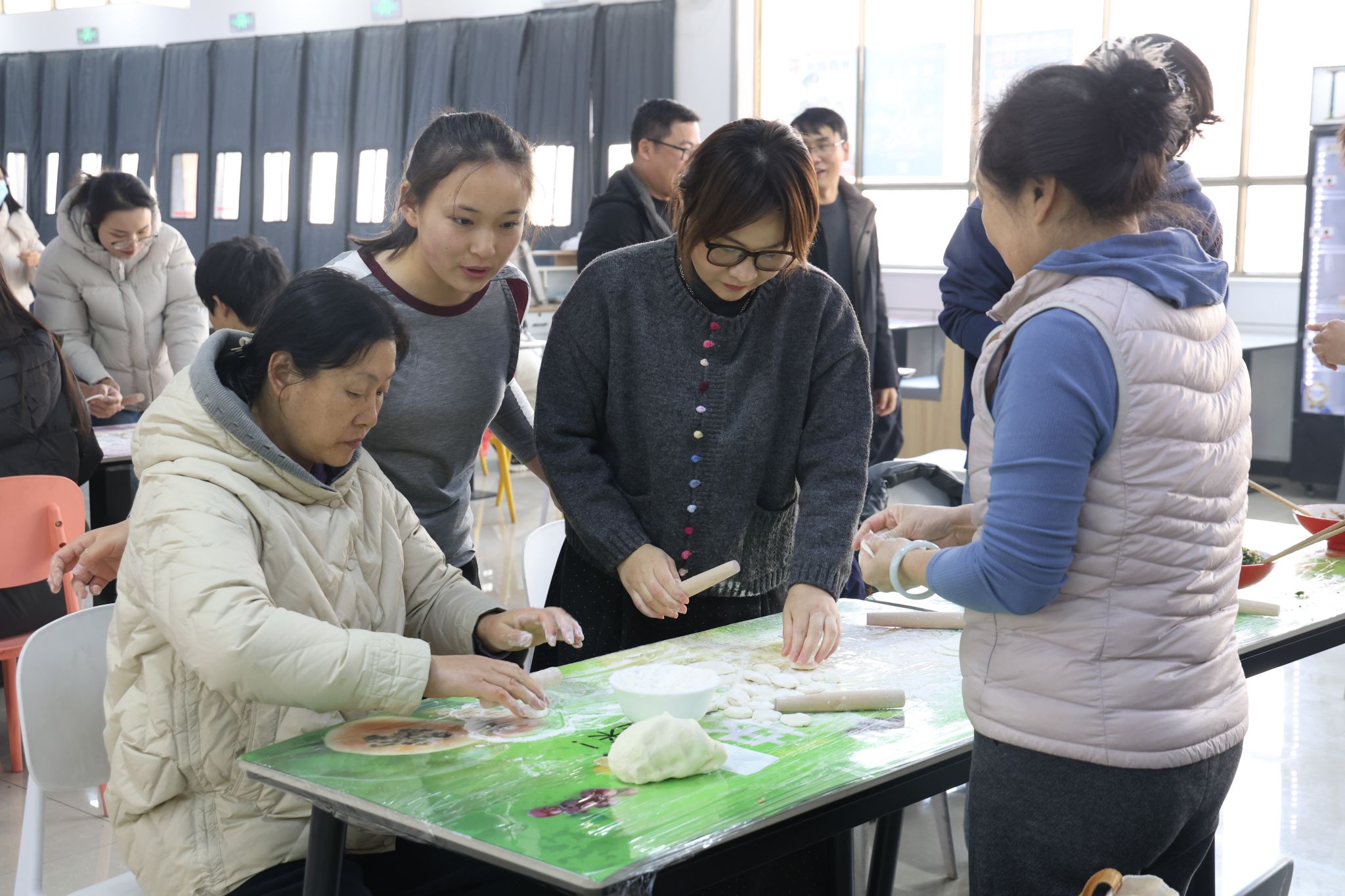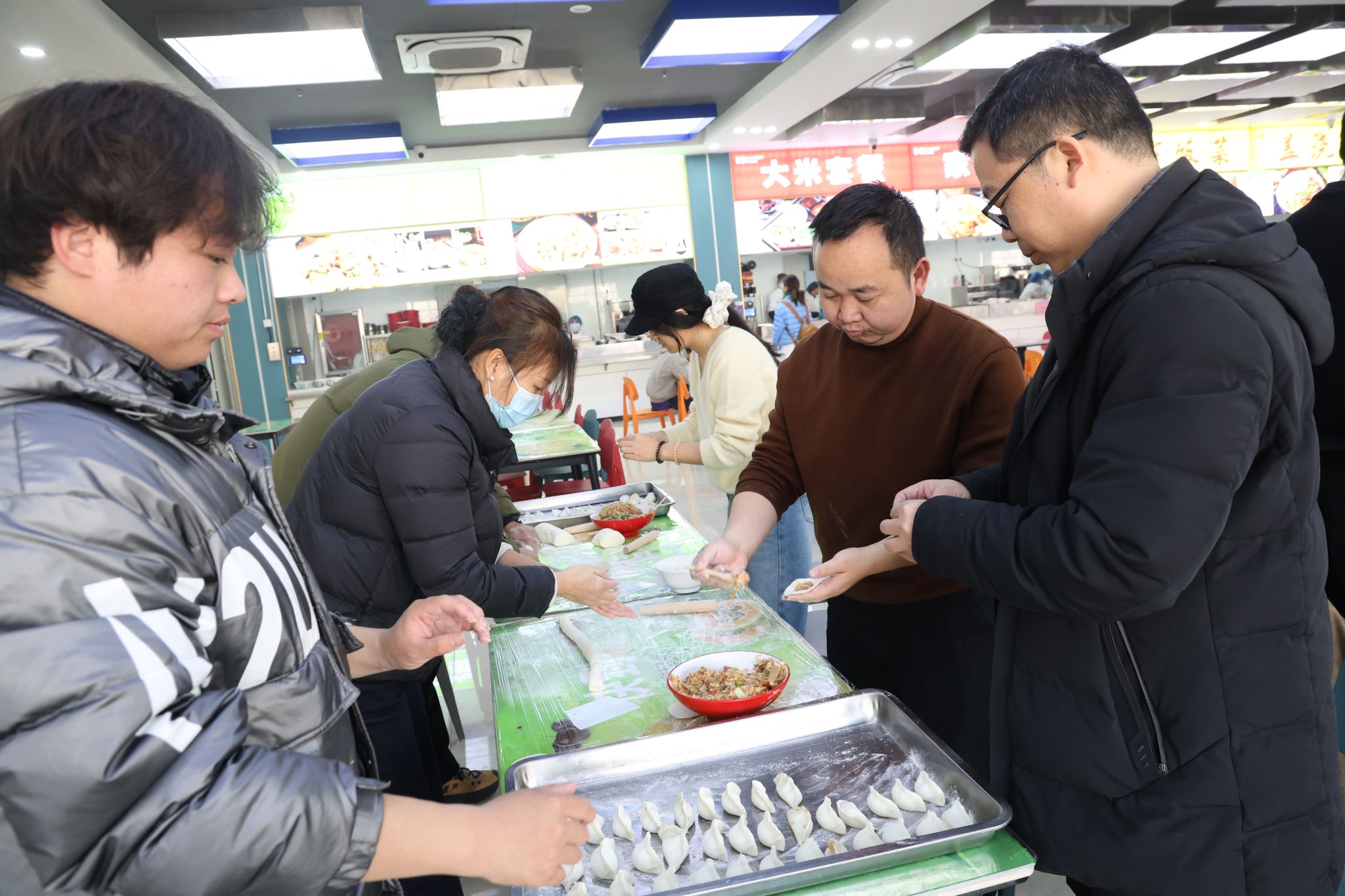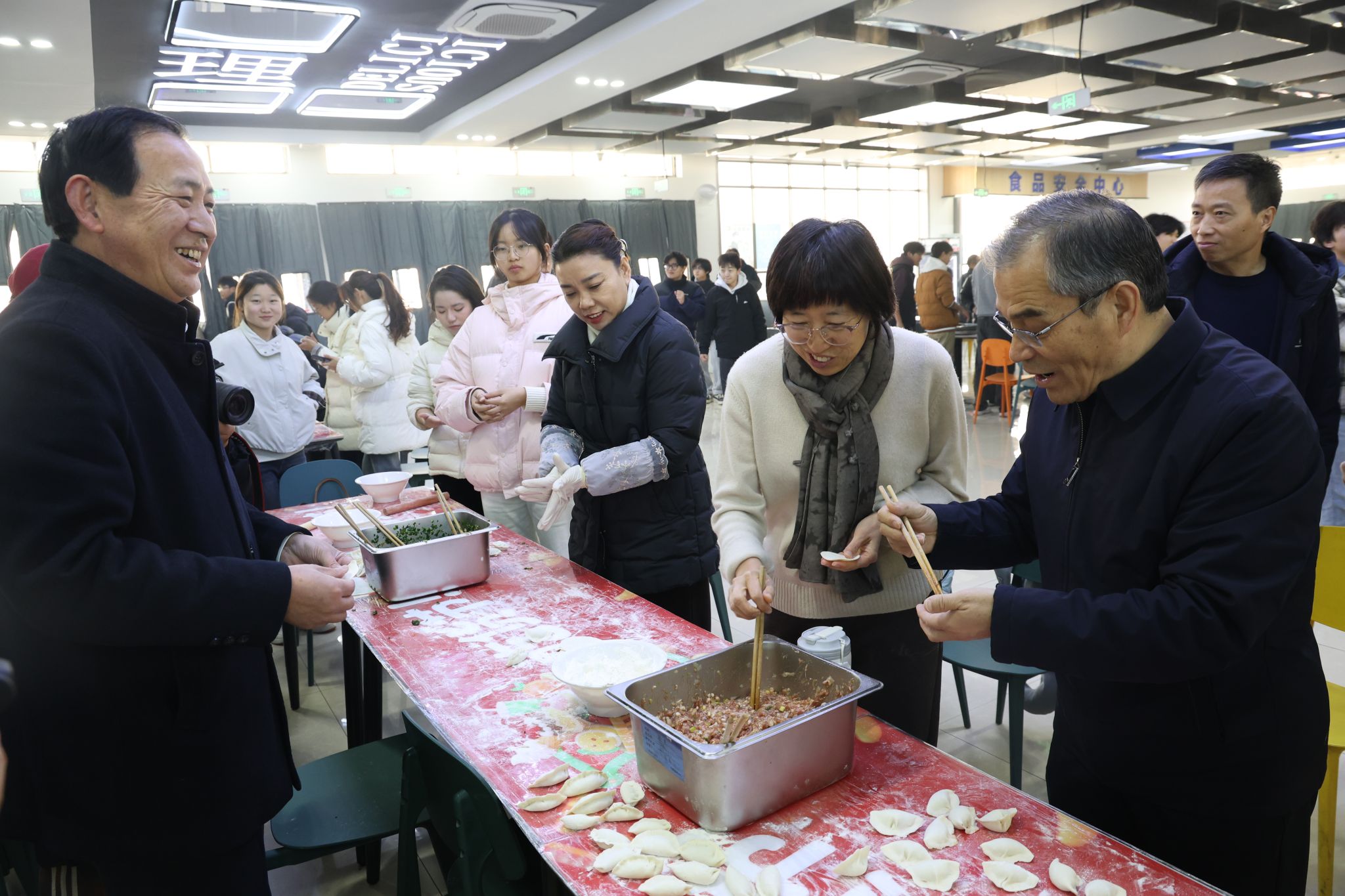活动现场,大家分工协作,配合默契,擀皮、包馅、摆盘等环节井然有序。王庆兵副书记和王莉华书记与老师们和同学们亲切交流,询问大家的工作、学习和生活情况,叮嘱大家注意防寒保暖,并分享了有关冬至的民俗文化。现场气氛温馨热烈,欢声笑语不断。不一会儿,形态各异、饱满精致的饺子便摆满了托盘。当热气腾腾的饺子出锅后,大家共同品尝劳动成果,暖意融融。