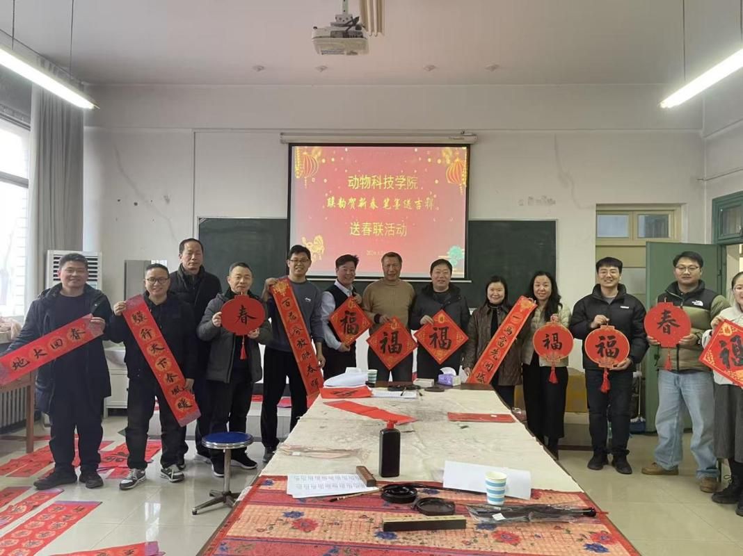 1月14日至17日,在新春佳节来临之际,动物科技学院在E103会议室举办了“联韵贺新春 笔墨送吉祥”迎新春活动,学院邀请校书法协会教师现场书写春联。