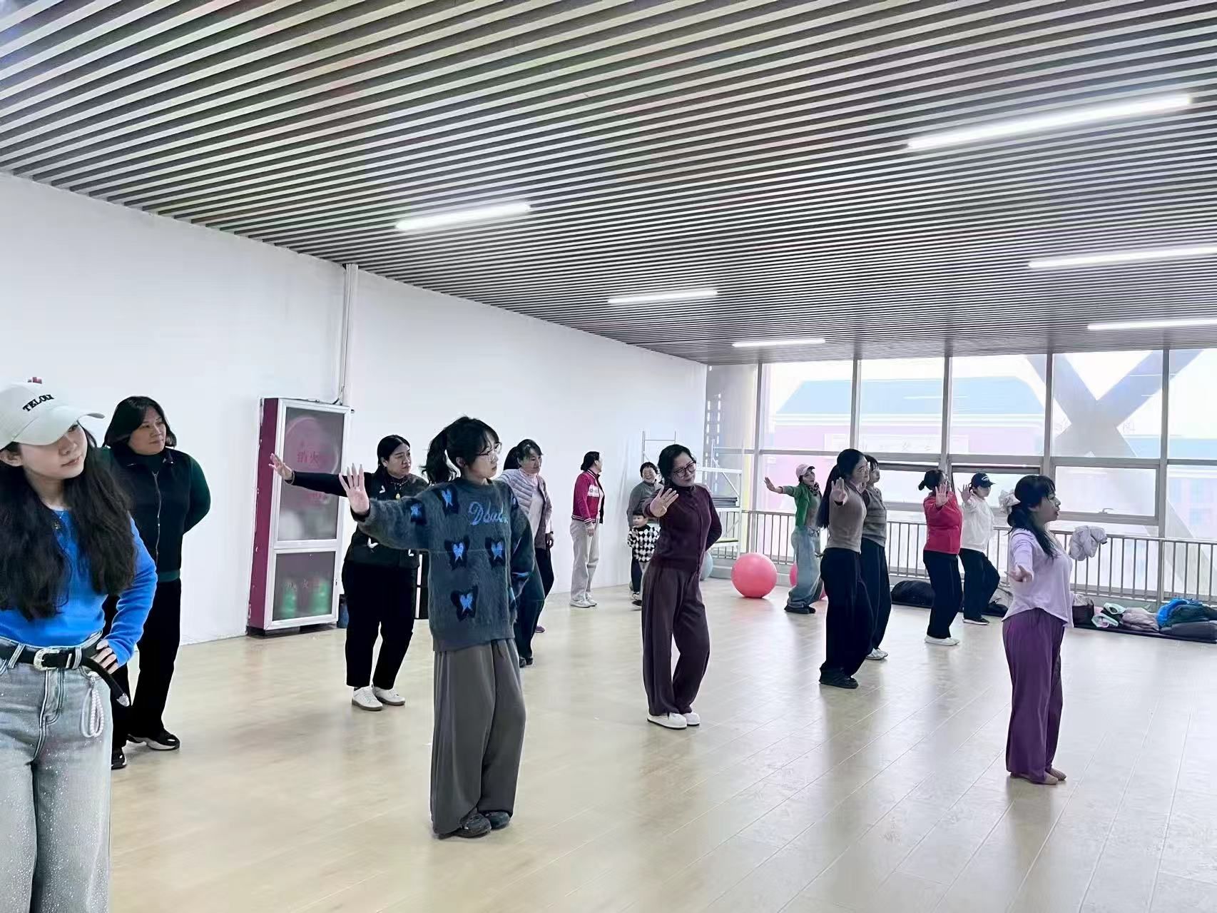本次活动特别邀请专业中国舞教练进行现场教学。在教练的耐心指导下,老师们认真学习基本身段、步法和手势,从最初的略显拘谨到逐渐舒展肢体,现场氛围温馨而热烈。大家跟随音乐节奏翩翩起舞,在欢声笑语中舒缓身心、陶冶情操,充分展现了新时代女性教职工积极向上的精神风貌。